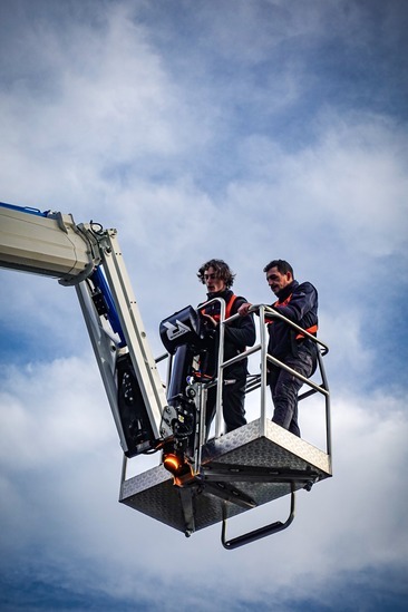 Pour l’accès en toiture, nous utilisons une nacelle araignée Raptor, qui intègre une technologie de pointe, offrant à la fois performance, sécurité et une maniabilité aux équipes, adaptée aux interventions en hauteur (21 mètres) et en environnements contraints, capable de supporter jusqu’à 220 kg.