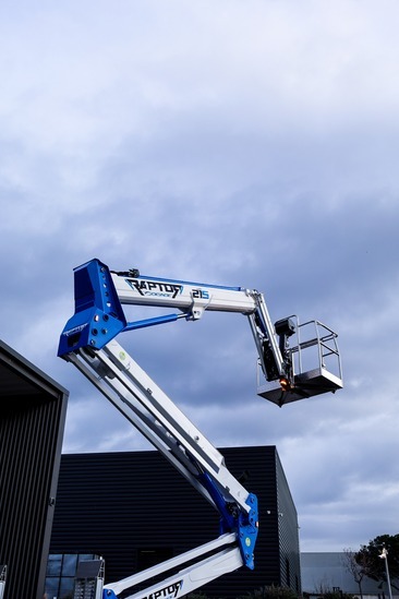 nous utilisons la nacelle araignée Raptor, offrant performance, sécurité et maniabilité, adaptée aux interventions jusqu’à 21 mètres et capable de supporter 220 kg.