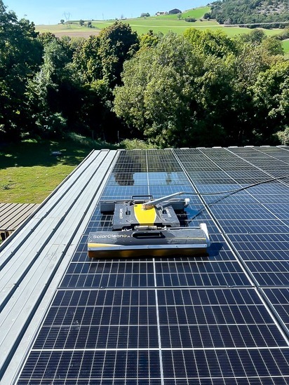 Nettoyage à l’eau pure, sans produits chimiques, compatible avec toutes les surfaces photovoltaïques.